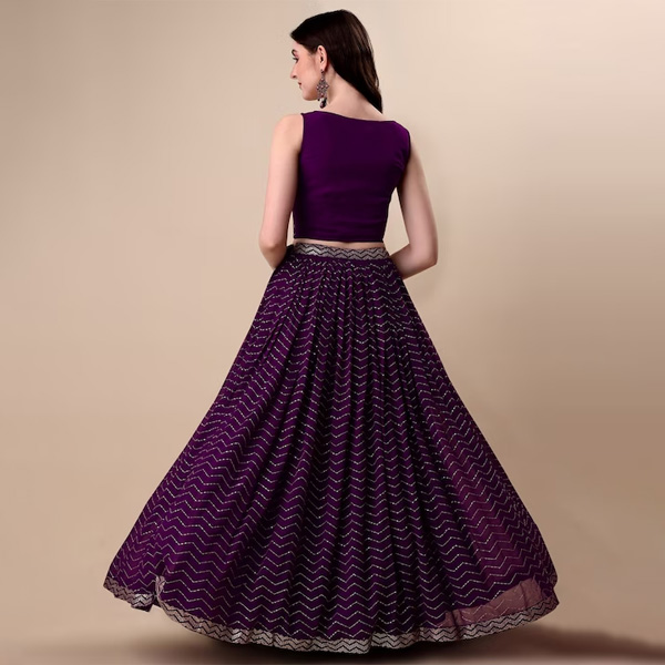 Lehenga CholiPurple embroidered lehenga choli with dupatta, has leheriya technique and sequinned