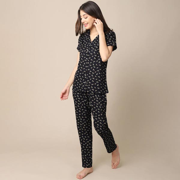You can simply unfurl yourself into the embrace of this night suit to unwind after a long day at work. This one is crafted with the softest fabric to leave you feeling light and airy.